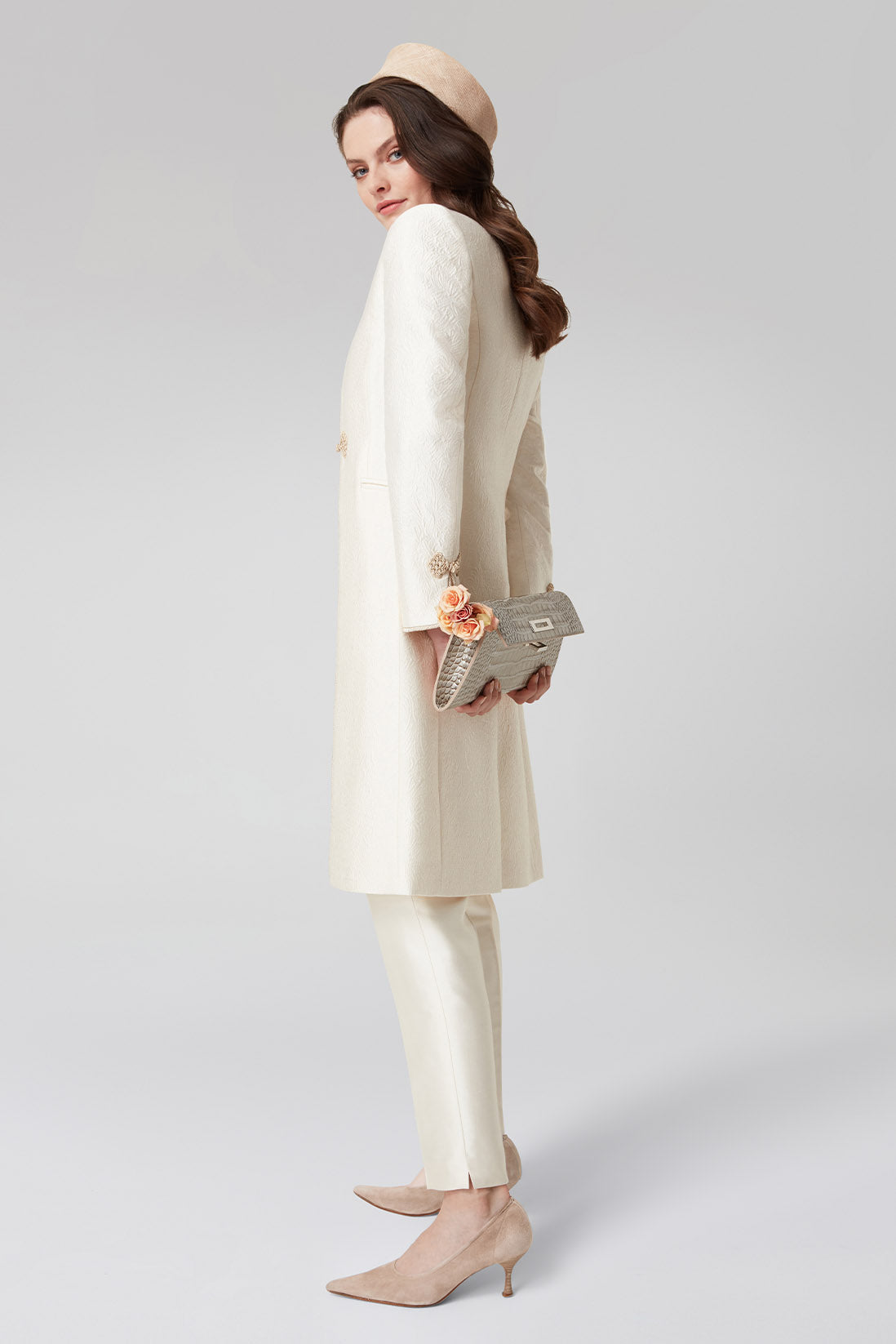 Discover the perfect outfits for royal investitures by Lalage Beaumont. Browse the collection of exquisitely tailored dresses, matching coats, dress coats, jackets and coordinating hats; these outfits, made from the finest fabrics, are just right for an investiture ceremony whether receiving your own honours or accompanying your partner or a family member. Our expert team can advise on the complete look.